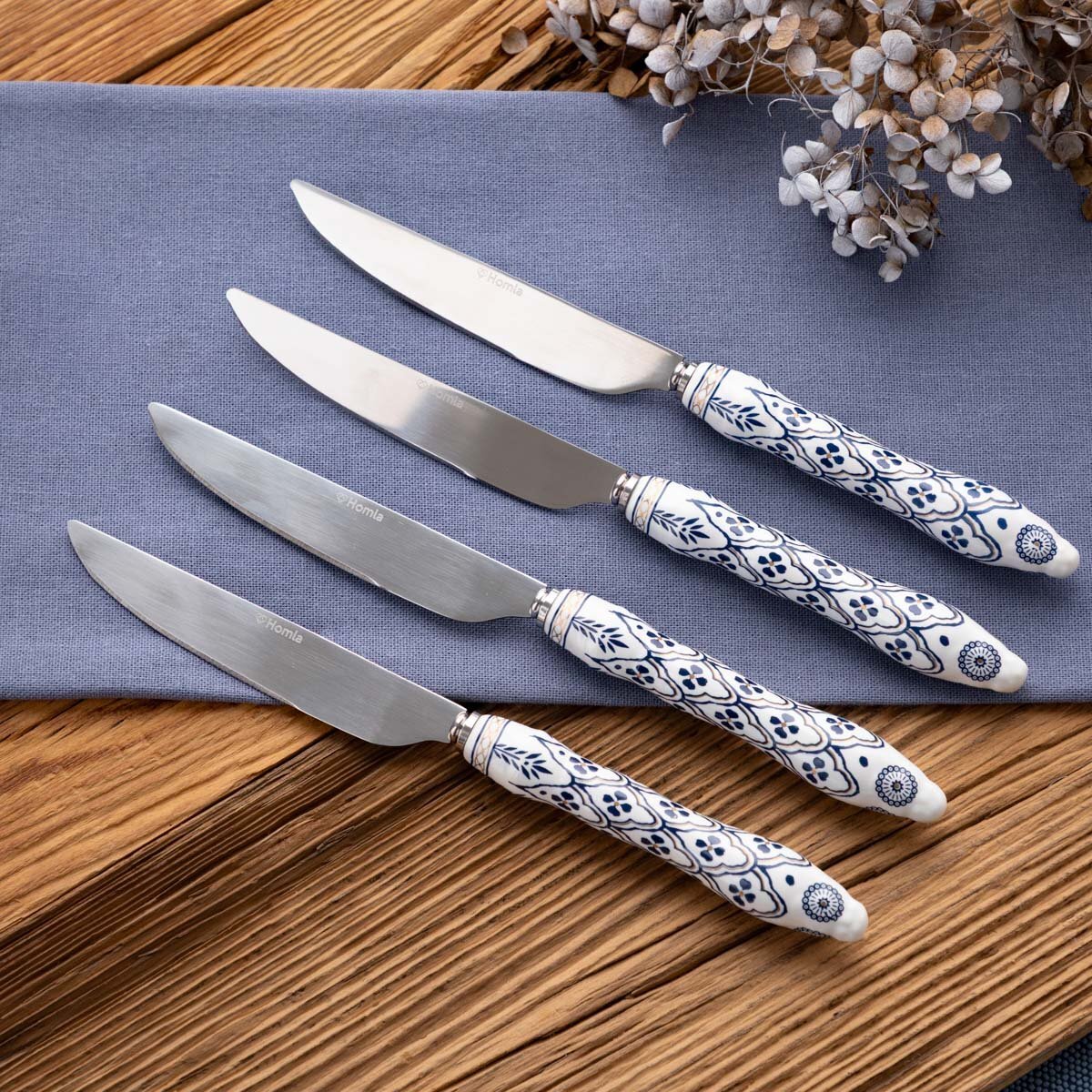 Sada jídelních nožů | MODERN HAMPTONS | stříbrná s modrými vzory | 4 ks | 723339