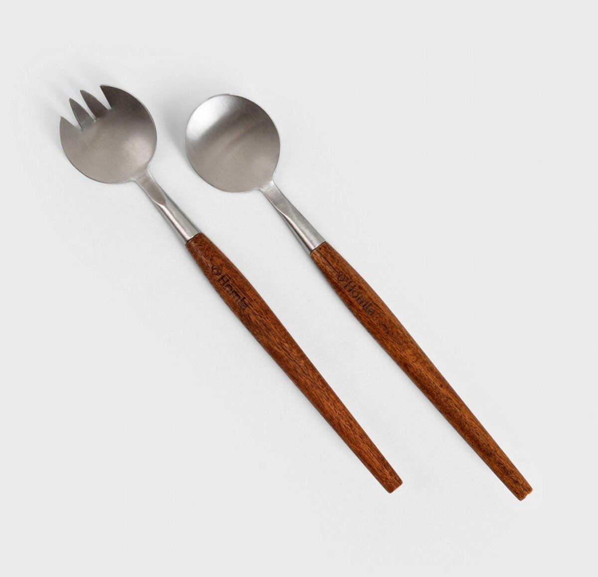 Dřevěné příbory - Sada obsahuje: lžíci a vidličku - Příbory MOOKA na salátPříbory MOOKA jsou určeny k servírování salátů. Sada se skládá z kulaté lžíce a vidličky, které usnadňují míchání a nabírání jídla na talíř. Rukojeti příborů jsou vyrobeny ze dřeva, díky čemuž sada vypadá velmi elegantně,...