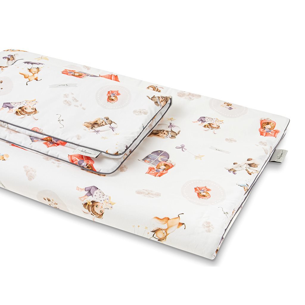 Nádherný bavlněný set do postýlky Belisima LULU. Set obsahuje polštářek a peřinku s krásným barevným dětským motivem. Vše je vyplněno antialergickým vláknem. Set je ušitý z vysoce kvalitního bavlněného materiálu. Praktický set lze využít do postýlky, kočárku, kolébky. Bavlněný set luxusně a jemně pohladí pokožku vašeho miminka. Rozměry: polštář: cca 35x25 cm, peřinka: 90x120cm. Složení: povlak 100% bavlna, výplň 100% polyester-antialergická výplň.