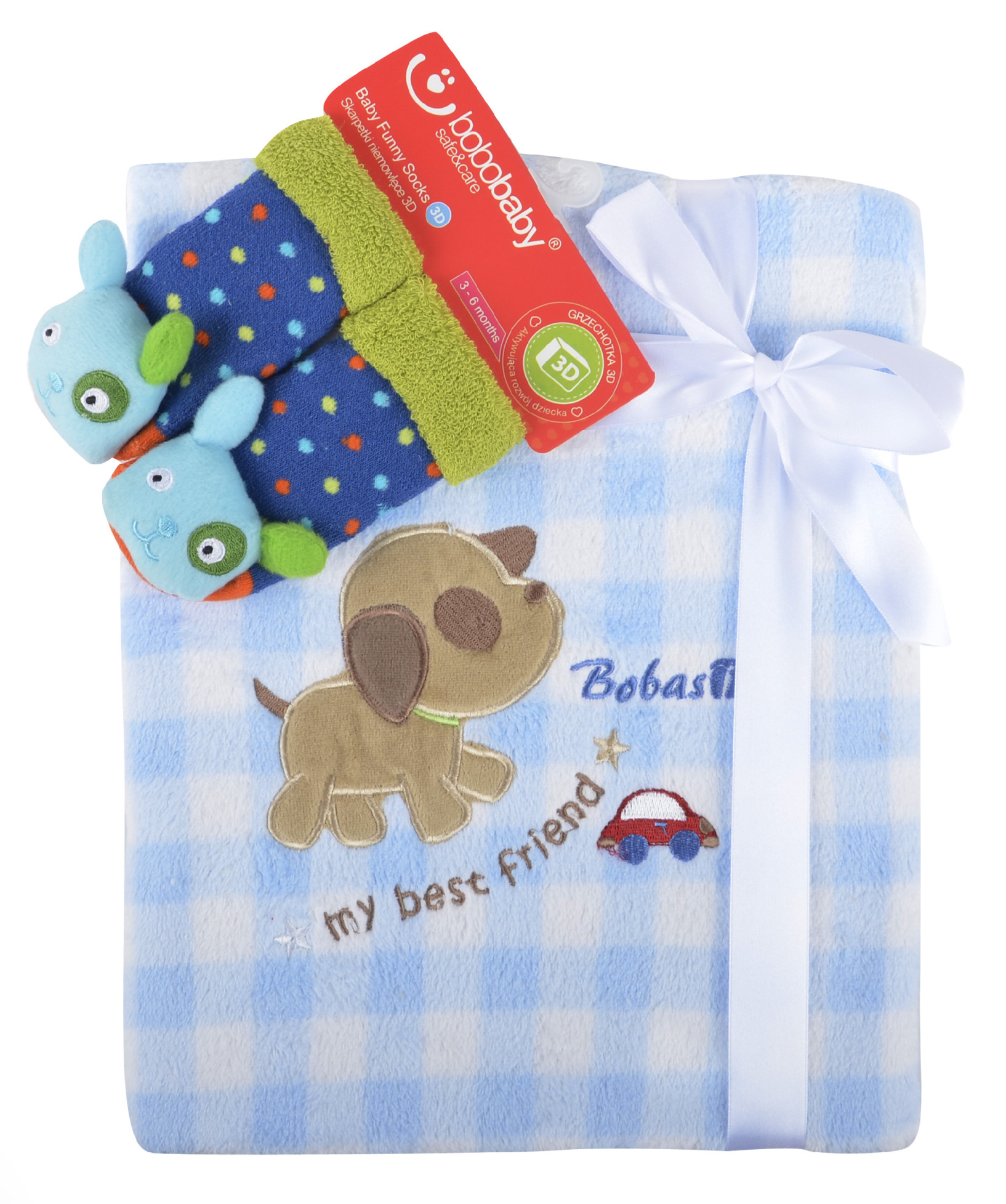 Krásná dětská deka z mikrovlákna s ozdobnými aplikacemi v rozměru 76x102 cm. Dárek - dětské ponožky s chrastítkem.Dětské 3D ponožky froté s aplikací zvířátka a s chrastítkem. Ponožky jsou barevné, mají veselý design a při pohybu nožiček vydávají chrastící zvuk, který zaujme dětskou pozornost....