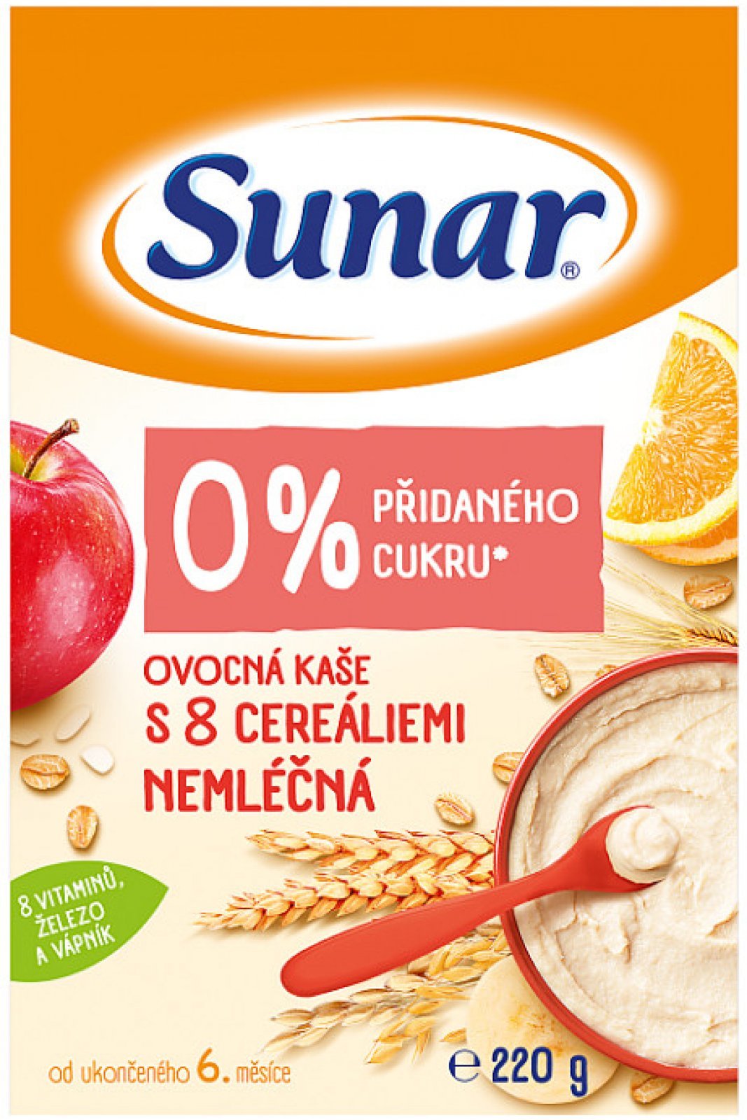 Sunar nemléčná ovocná kaše s 8 cereáliemi 220 g
