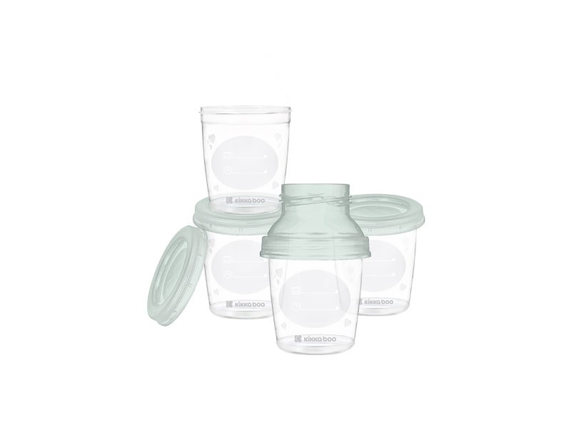 Nádobky s víčky KikkaBoo jsou určené pro bezpečné skladování mateřského mléka a dětských příkrmů v lednici i mrazáku. Šroubovací víčko zajistí spolehlivou ochranu obsahu nádobky. Boční popisovatelná strana nádobky umožňuje označení data uložení i popis obsahu.