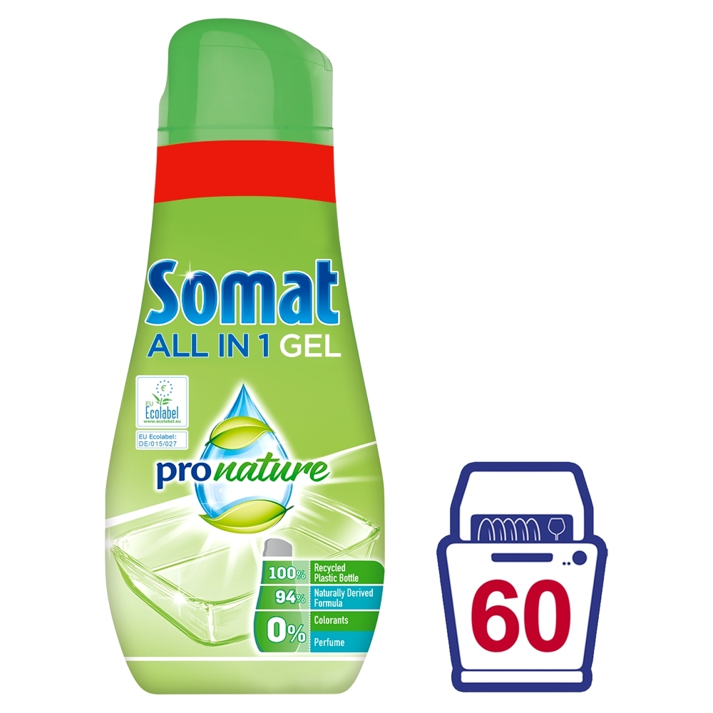 SOMAT All in 1 Pro Nature je šetrný k přírodě Zanechá vaše nádobí čisté i při nastavení nižší teploty mytíNeobsahuje barviva ani parfémy SOMAT All in 1 Pro Nature obsahuje 80 % látek přírodního původuMycí gel...