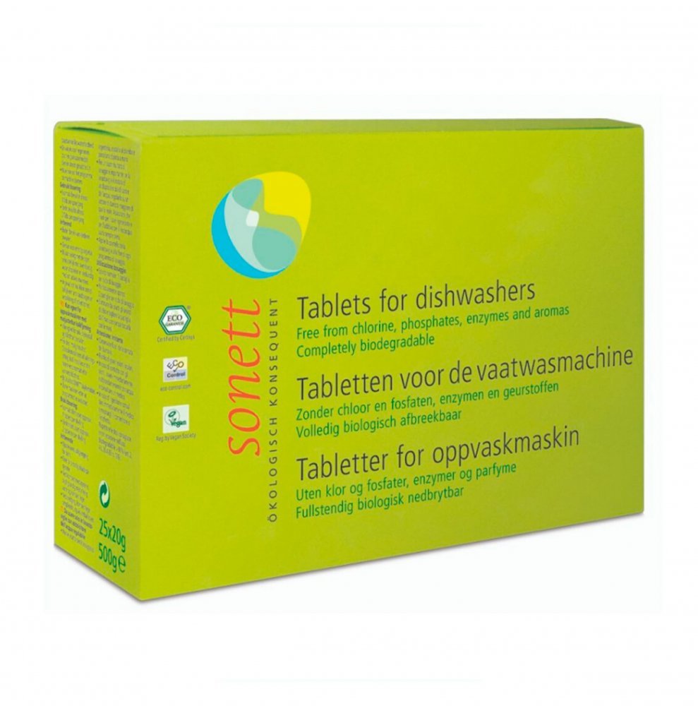 SONETT Tablety do myčky (25 ks) 500 gÚčinný prostředek do myčky na nádobí. Speciální složení efektivně odstraní mastné skvrny a zbytky jídla.Dávkování: 1 tableta - 20g na jeden cyklus. Při velkém znečištění zvyšte na 2 tablety na cyklus.Tablety SONETT obsahují nerostné látky a biologicky plně...