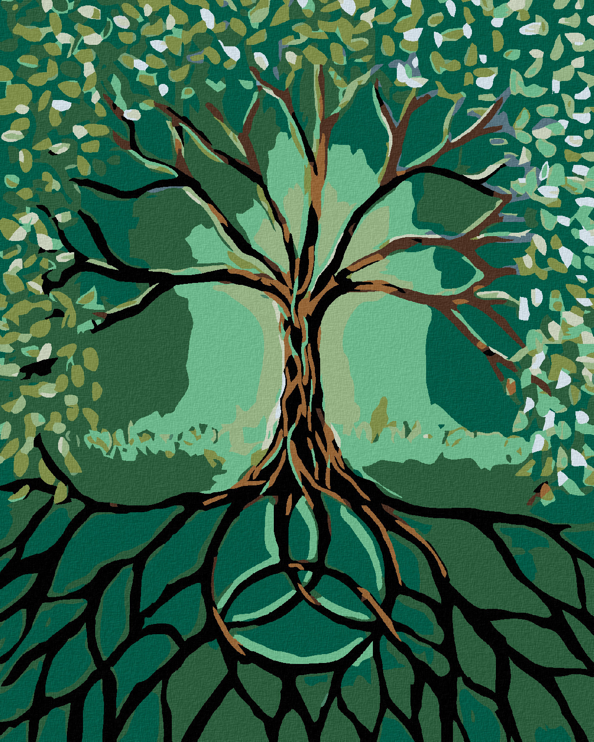 Malování podle čísel - STROM S KOŘENY - 80x100 cm, vypnuté plátno na rám