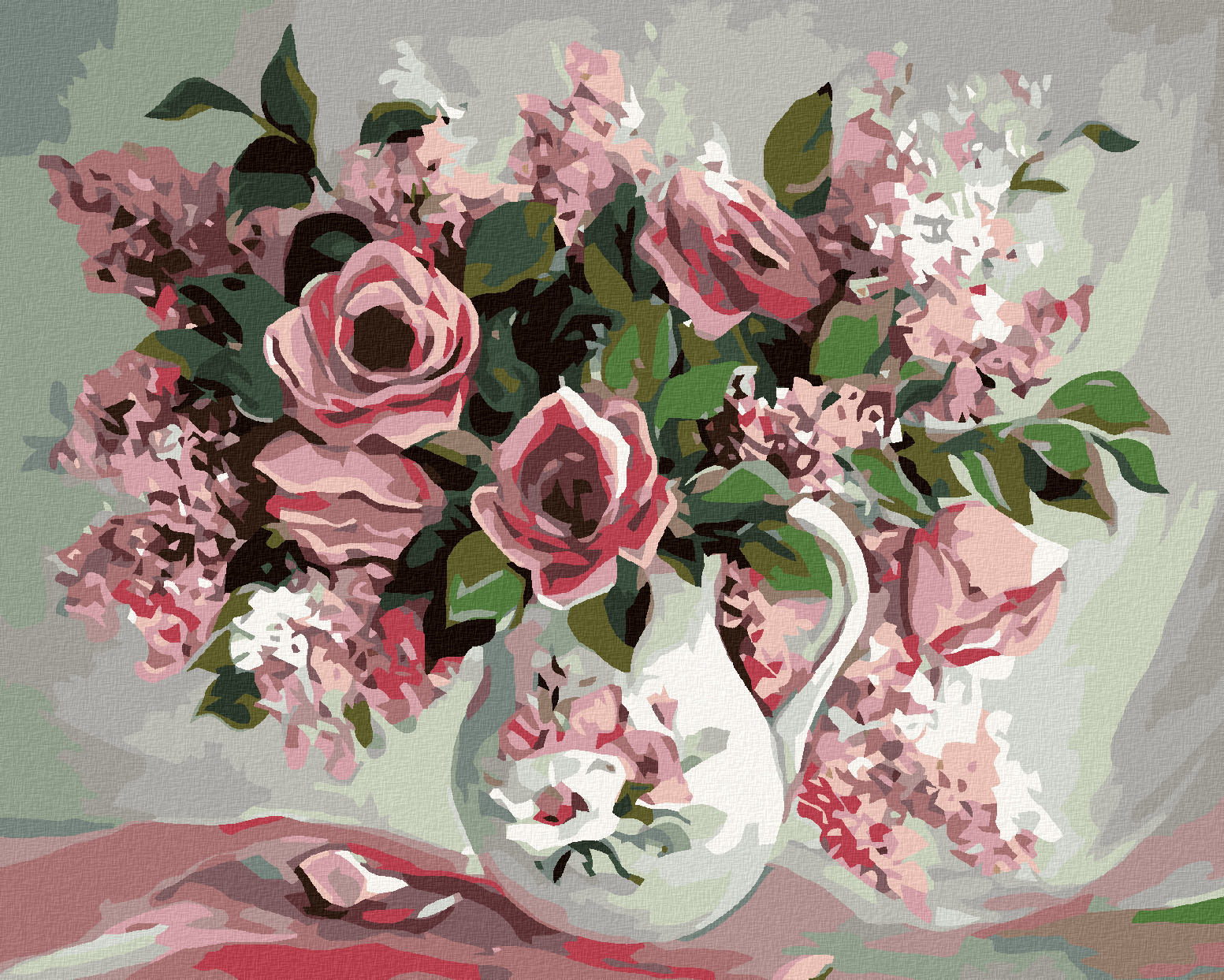 Malování podle čísel - RŮŽE A ŠEŘÍKY V MALOVANÉ VÁZE - 80x100 cm, vypnuté plátno na rám