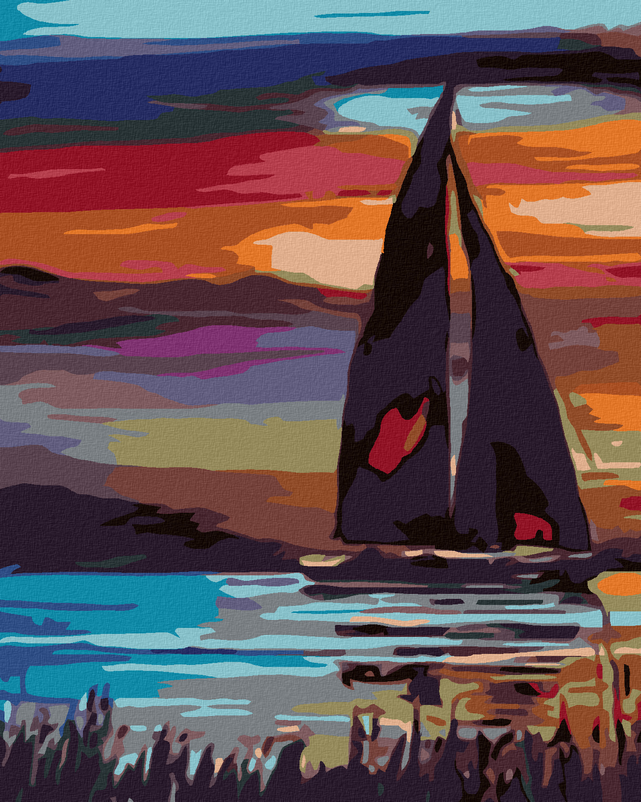 Malování podle čísel - PLACHETNICE NA JEZEŘE - 80x100 cm, vypnuté plátno na rám