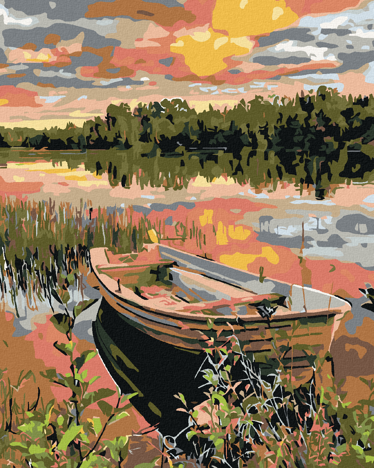 Malování podle čísel - LOĎKA V RÁKOSÍ - 80x100 cm, vypnuté plátno na rám