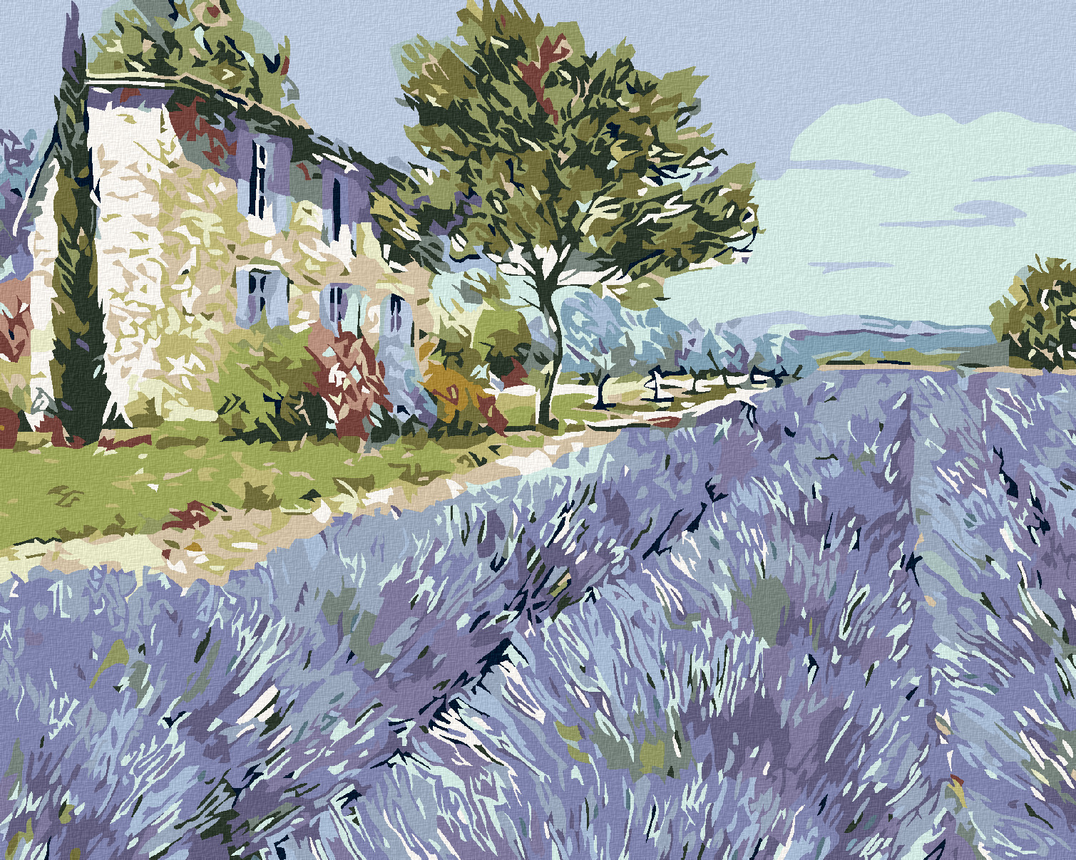 Malování podle čísel - LEVANDULOVÉ POLE I - 80x100 cm, bez rámu a bez vypnutí plátna