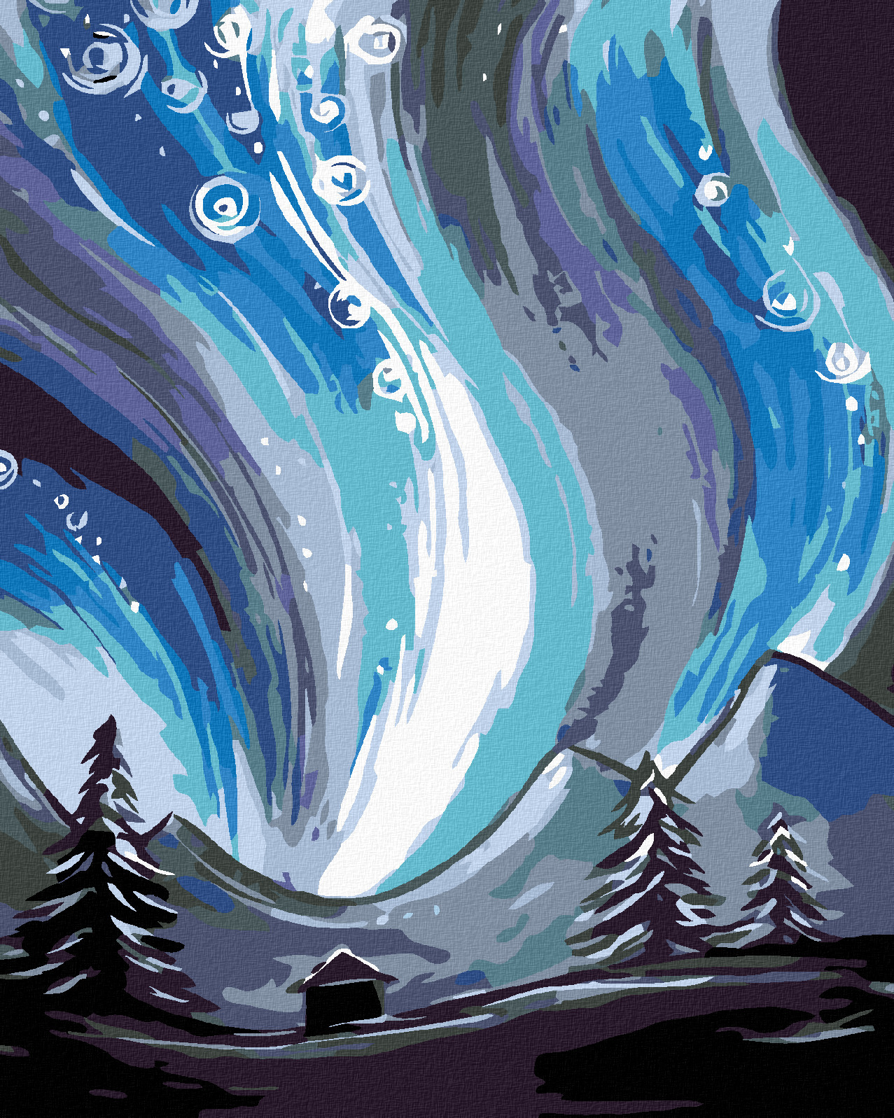Malování podle čísel - POLÁRNÍ ZÁŘE - 80x100 cm, vypnuté plátno na rám