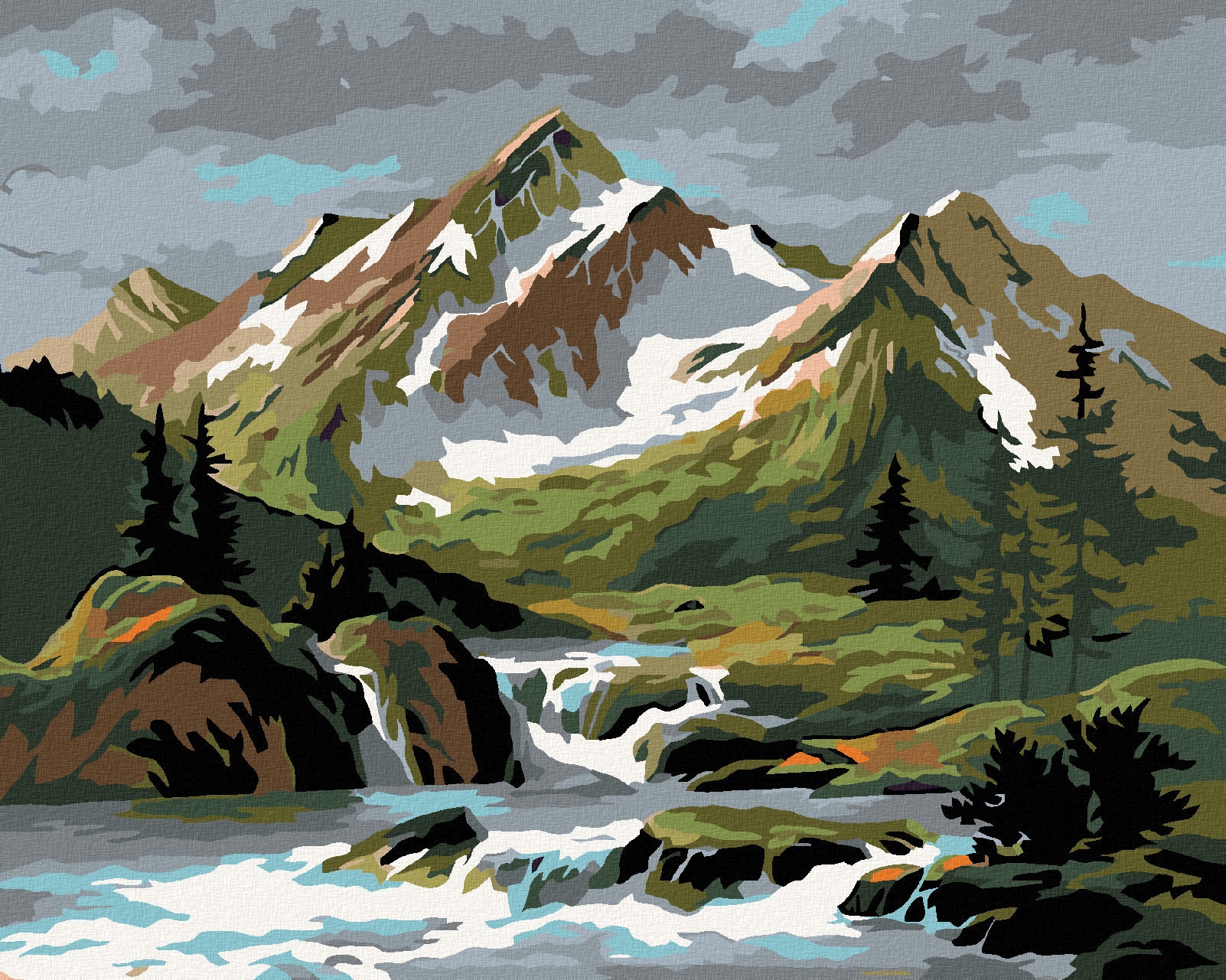 Malování podle čísel - TEKOUCÍ POTOK POD HOROU - 80x100 cm, vypnuté plátno na rám