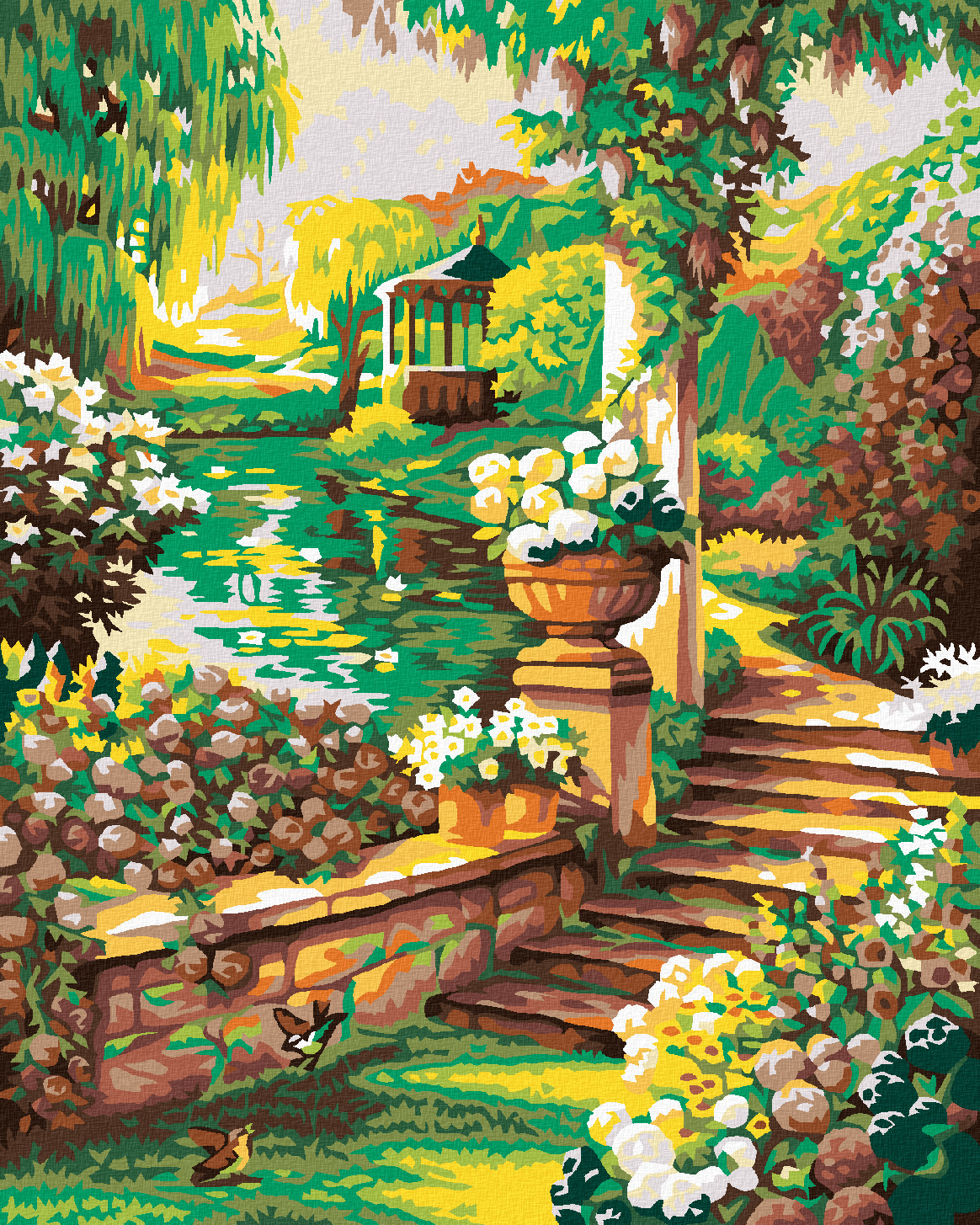 Malování podle čísel - KRÁSNÁ KVĚTINOVÁ ZAHRÁDKA S ALTÁNEM - 80x100 cm, vypnuté plátno na rám