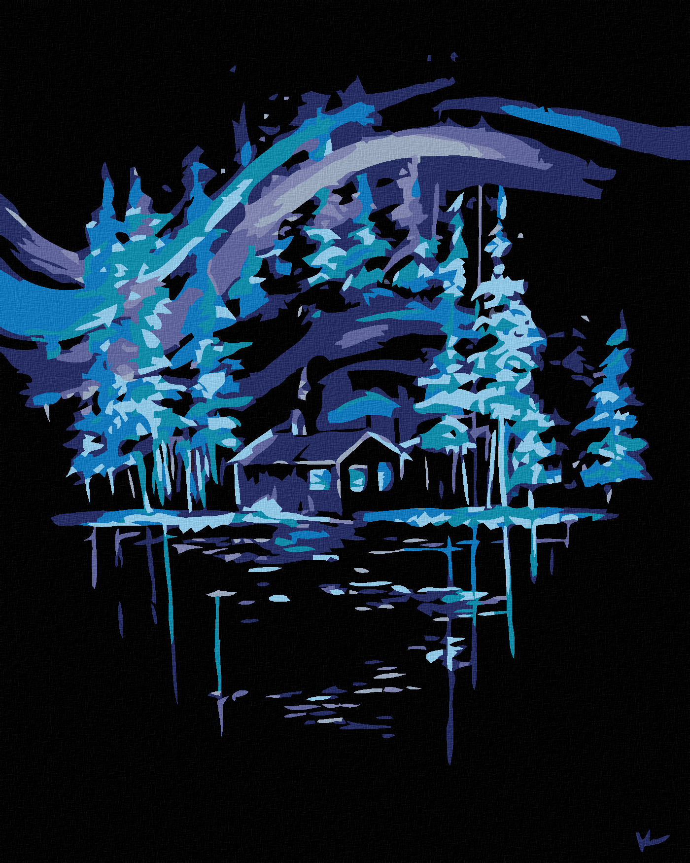 Malování podle čísel - POLÁRNÍ ZÁŘE NAD CHALOUPKOU - 80x100 cm, bez rámu a bez vypnutí plátna