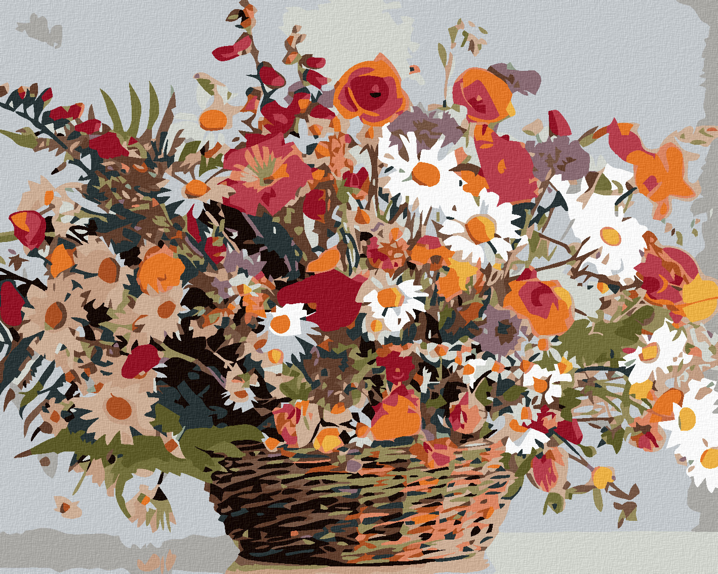 Malování podle čísel - LUČNÍ KVÍTÍ V KOŠÍKU - 80x100 cm, bez rámu a bez vypnutí plátna