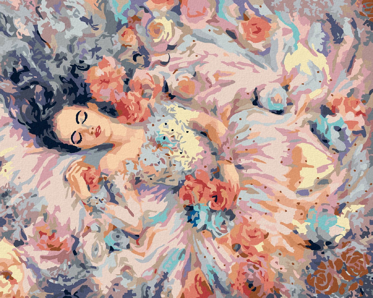 Malování podle čísel - ŽENA OBKLOPENA RŮŽEMI - 80x100 cm, bez rámu a bez vypnutí plátna