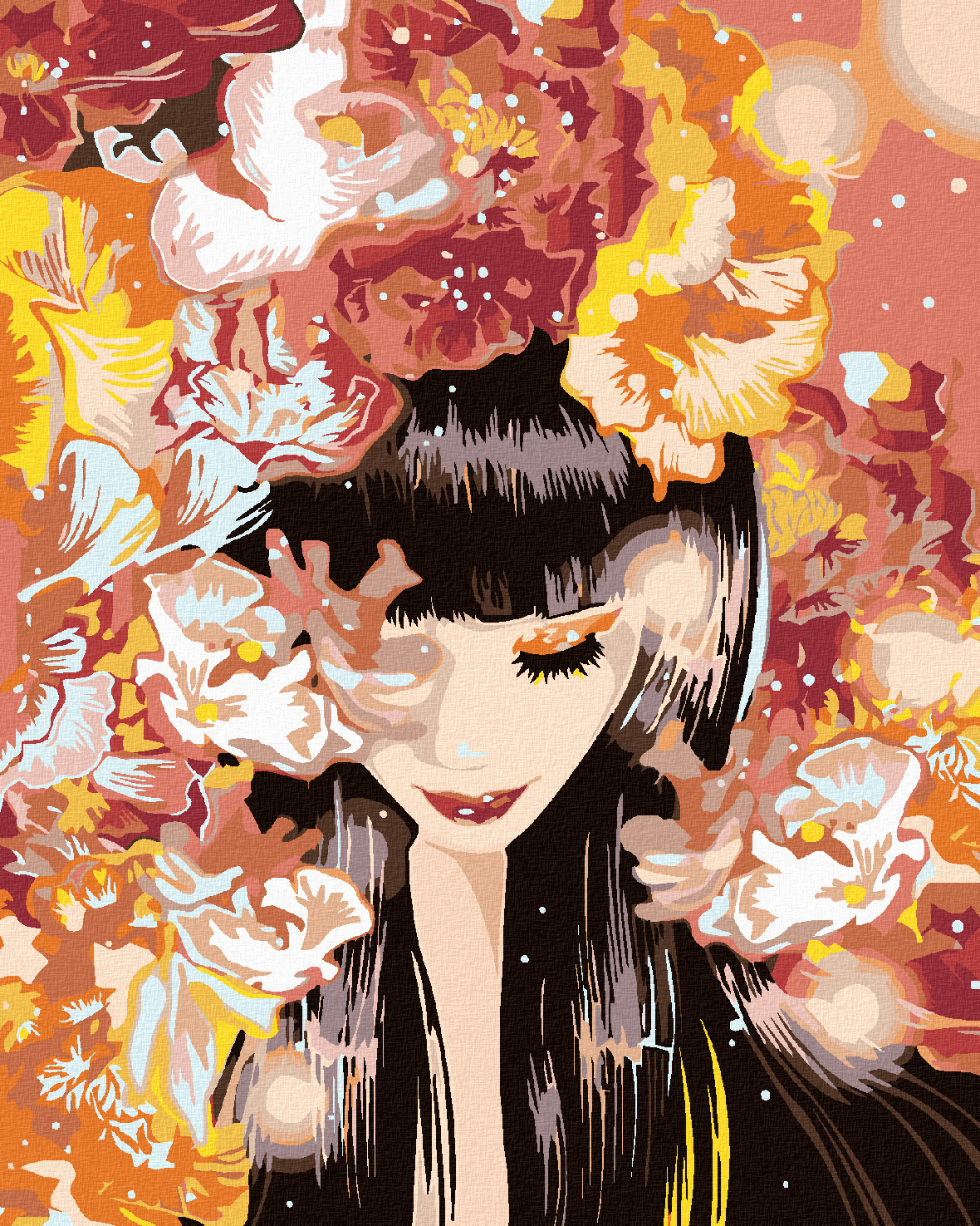 Malování podle čísel - KRÁSKA MEZI KVĚTY - 80x100 cm, bez rámu a bez vypnutí plátna