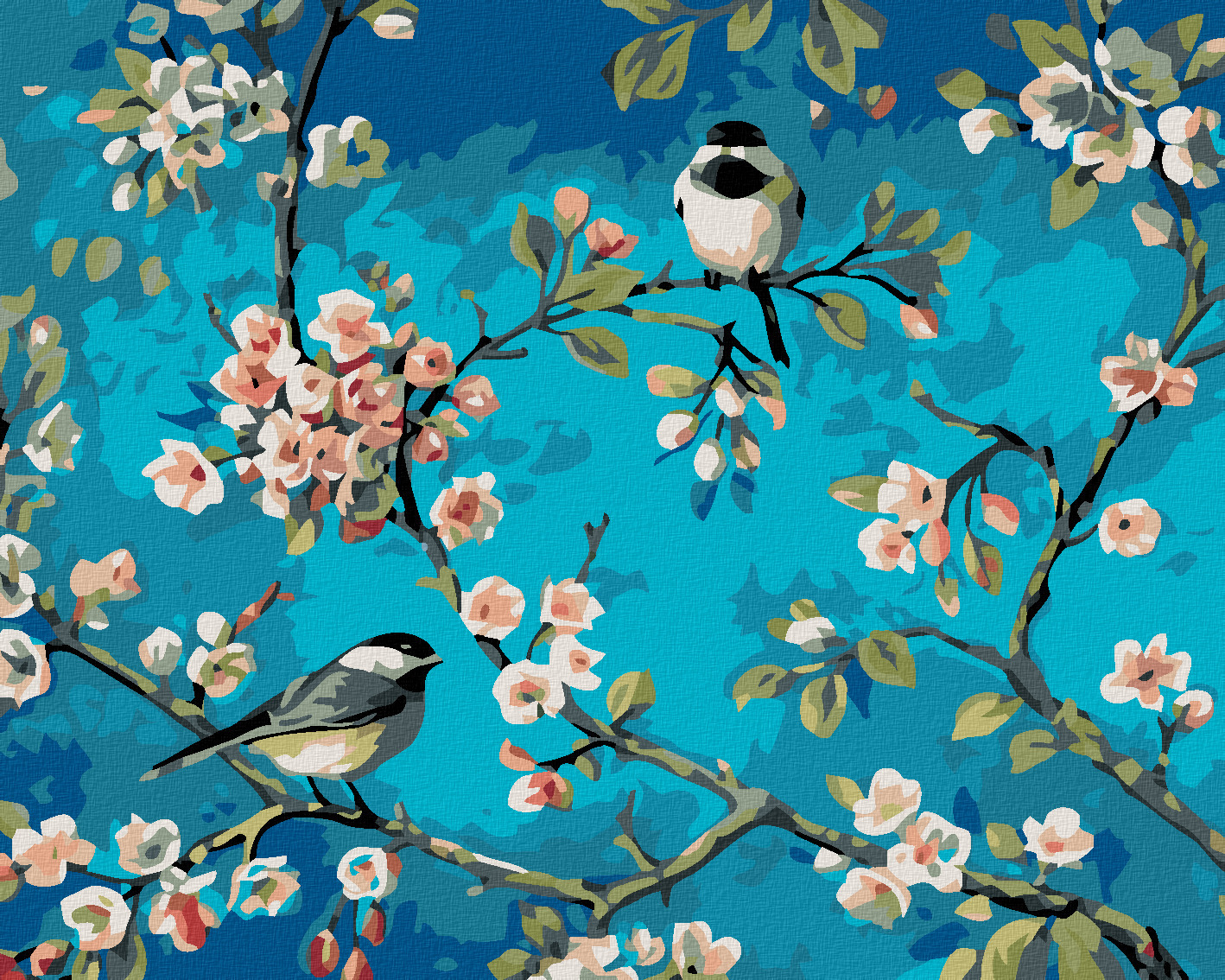 Malování podle čísel - DVA SEDÍCÍ PTÁCI - 80x100 cm, bez rámu a bez vypnutí plátna
