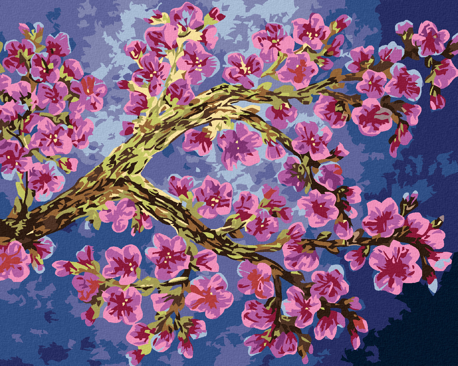 Malování podle čísel - KVETOUCÍ VĚTEV SAKURY - 40x50 cm, vypnuté plátno na rám