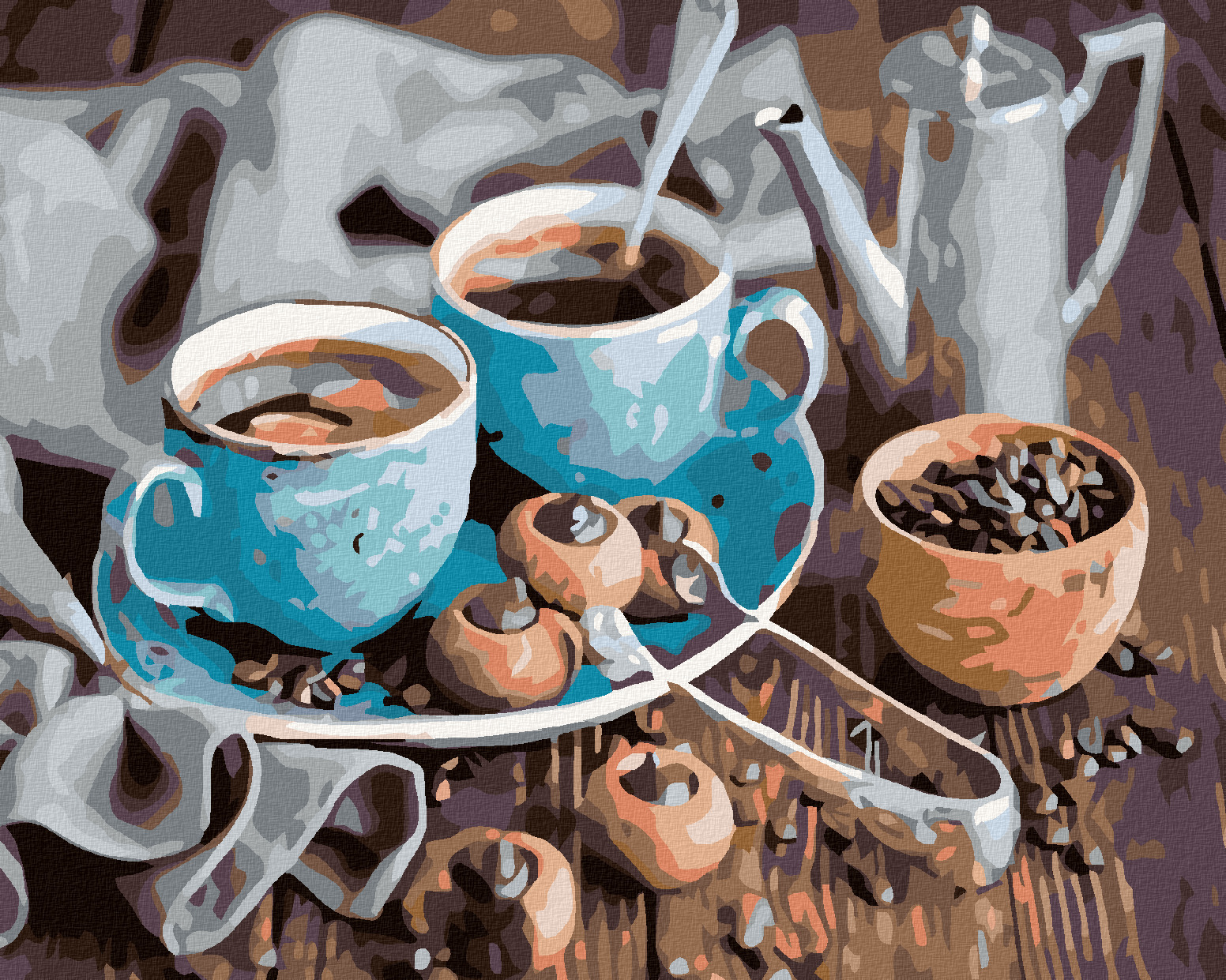 Malování podle čísel - MODRÉ ŠÁLKY KÁVY - 80x100 cm, vypnuté plátno na rám