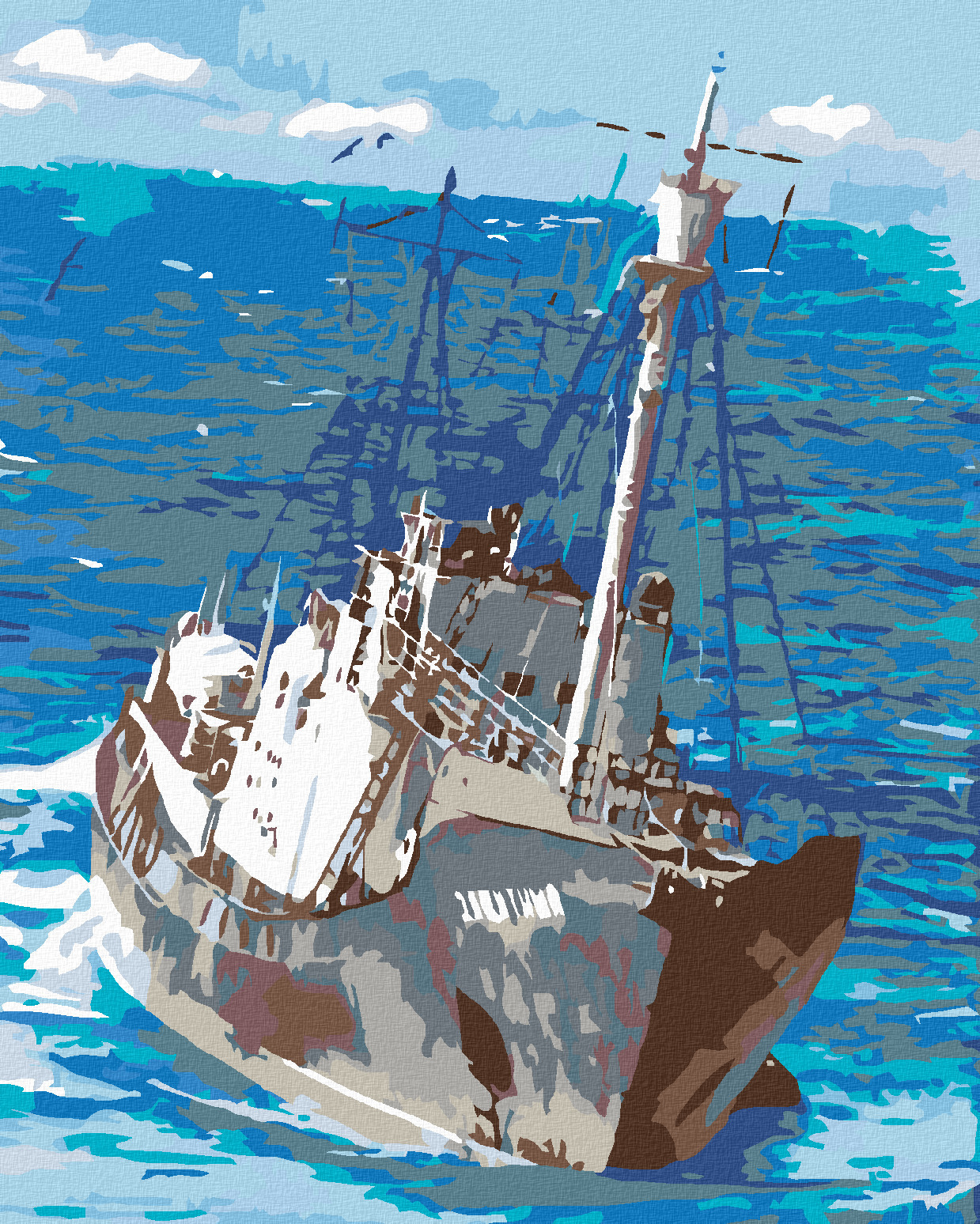 Malování podle čísel - RYBÁŘSKÁ LOĎ NA MOŘI - 80x100 cm, bez rámu a bez vypnutí plátna