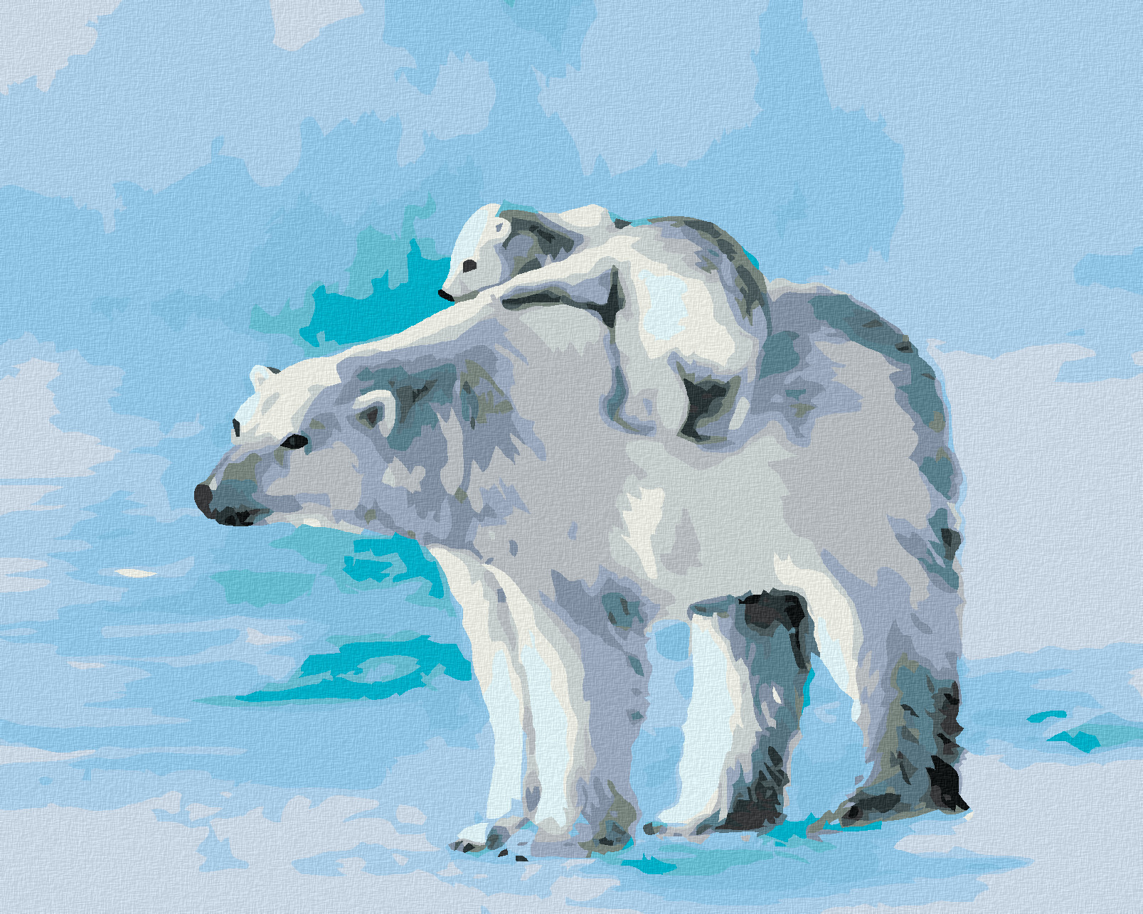 Malování podle čísel - POLÁRNÍ MEDVĚD A MEDVÍDĚ - 80x100 cm, vypnuté plátno na rám