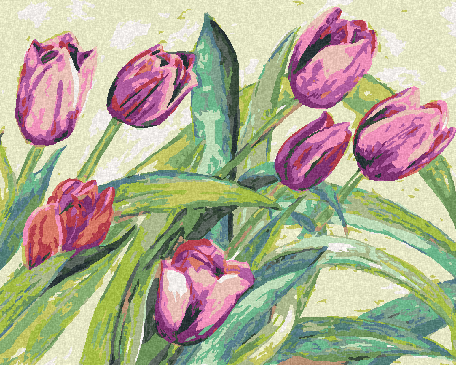 Malování podle čísel - FIALOVÉ TULIPÁNY - 80x100 cm, bez rámu a bez vypnutí plátna