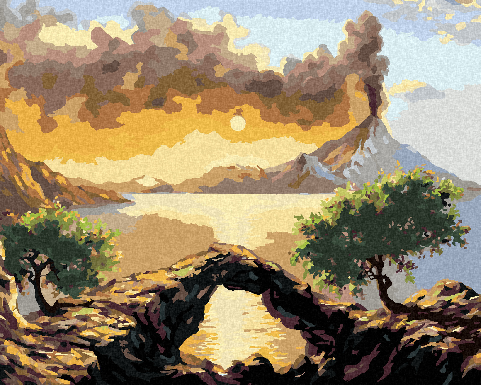 Malování podle čísel - KRAJINA S VÝBUCHEM SOPKY - 80x100 cm, bez rámu a bez vypnutí plátna