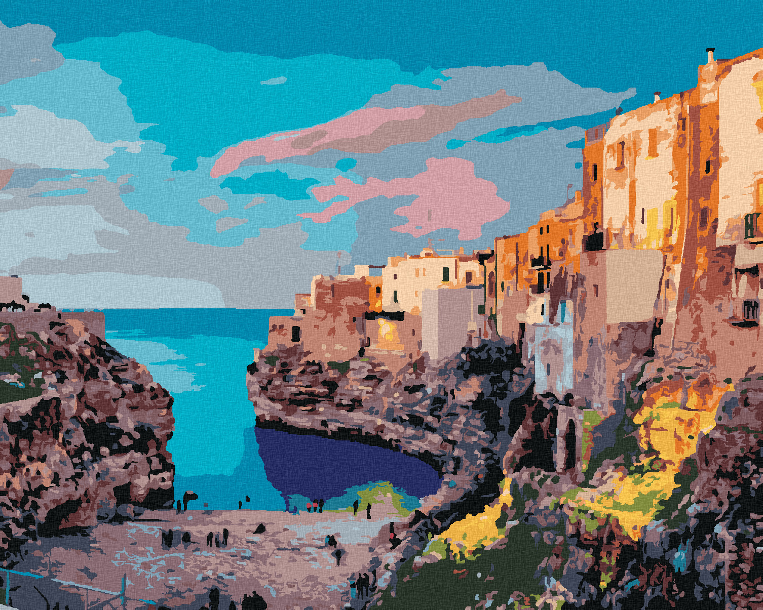 Malování podle čísel - JARNÍ PANORAMA MĚSTA POLIGNANO - 80x100 cm, bez rámu a bez vypnutí plátna