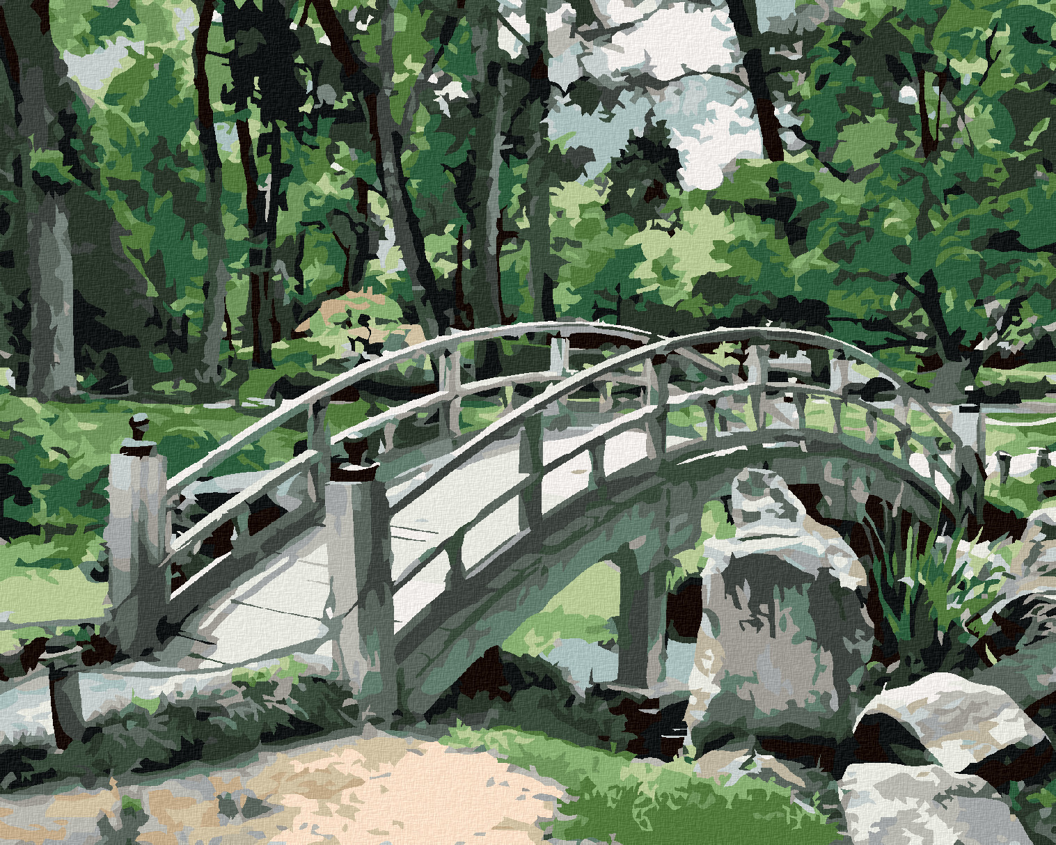 Malování podle čísel - JAPONSKO MOST U LESA - 80x100 cm, bez rámu a bez vypnutí plátna
