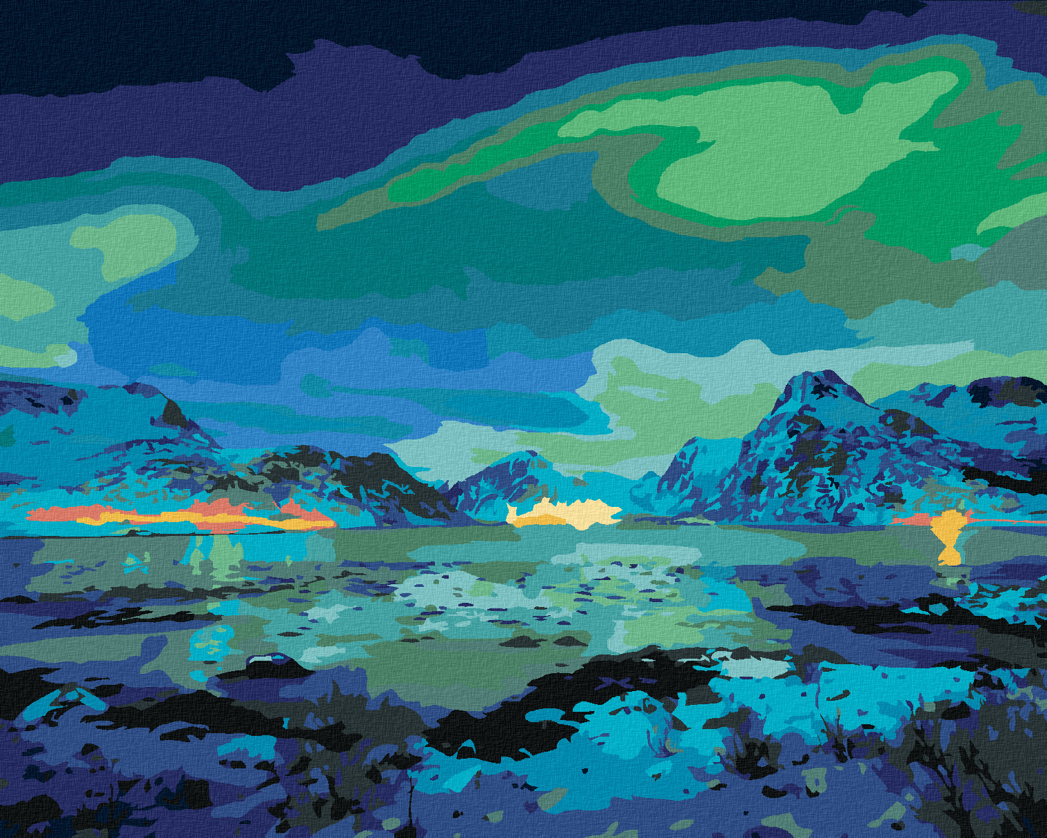 Malování podle čísel - POLÁRNÍ ZÁŘE NAD HORAMI - 40x50 cm, vypnuté plátno na rám