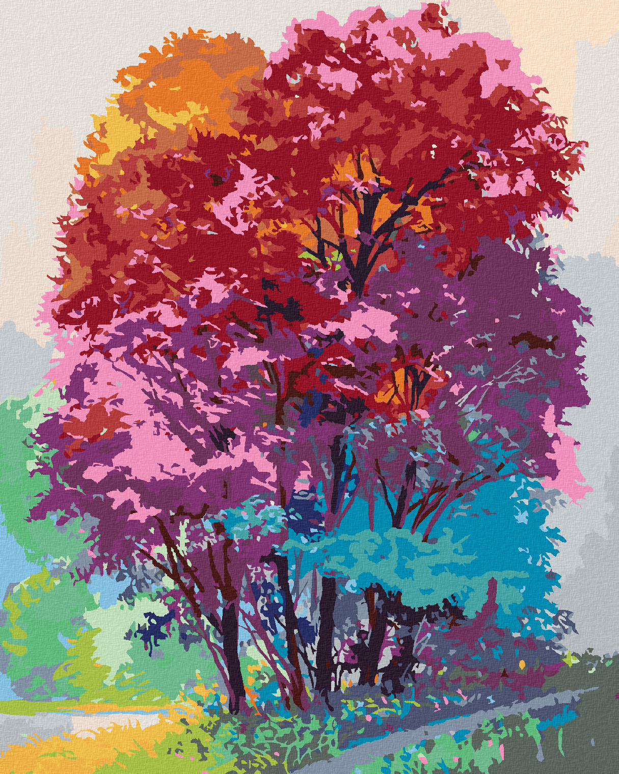 Malování podle čísel - BAREVNÝ STROM V LESE - 80x100 cm, bez rámu a bez vypnutí plátna