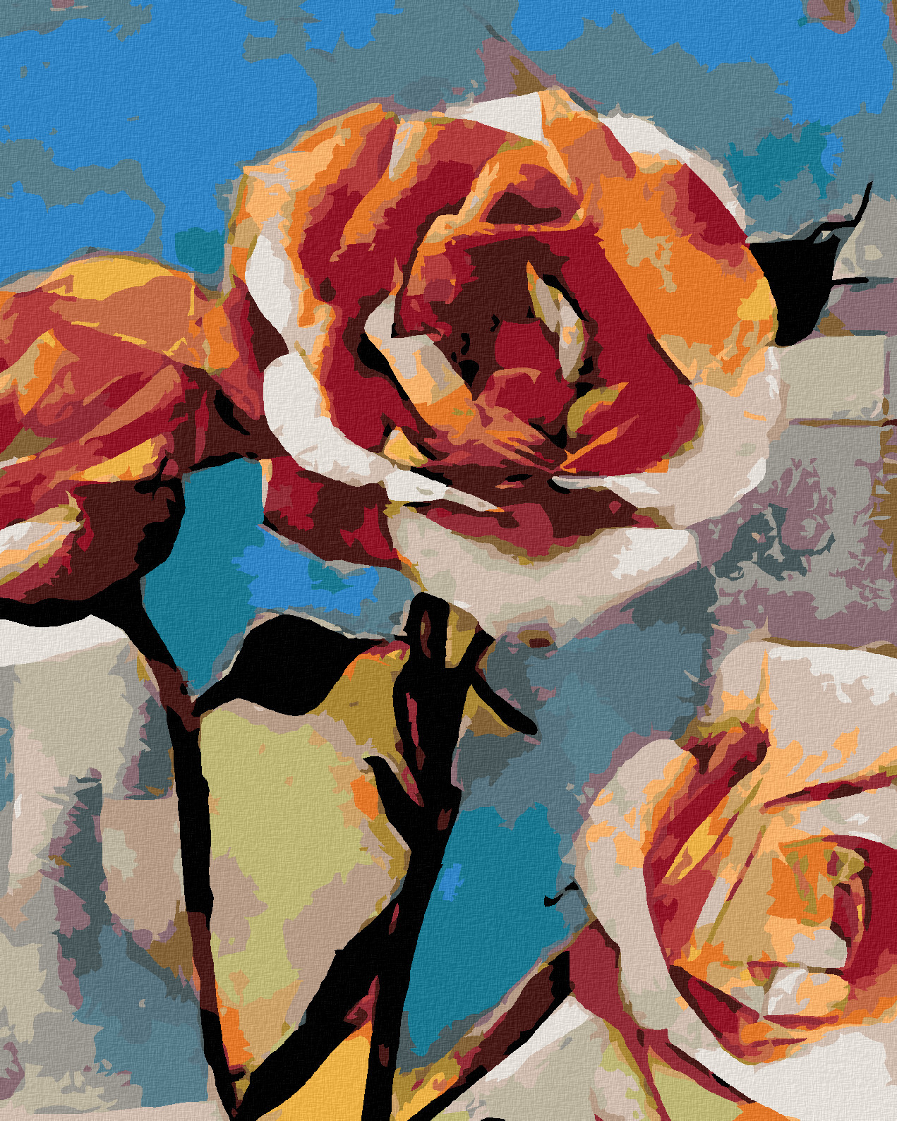 Malování podle čísel - KYTICE KVĚTIN V KUBICKÉM STYLU - 40x50 cm, bez rámu a bez vypnutí plátna