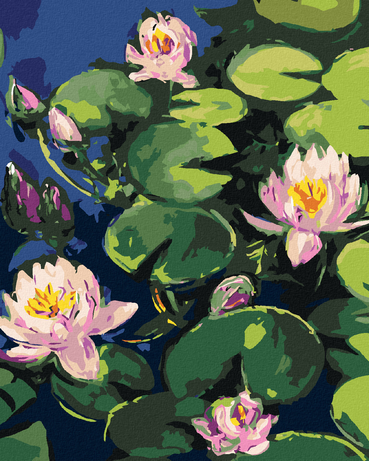 Malování podle čísel - LEKNÍNY V ZAHRADNÍM JEZEŘE - 40x50 cm, vypnuté plátno na rám