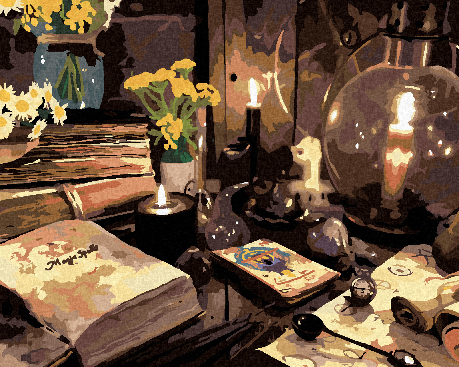 Malování podle čísel - KOUZELNÁ KNIHA A SVÍČKY - 80x100 cm, bez rámu a bez vypnutí plátna