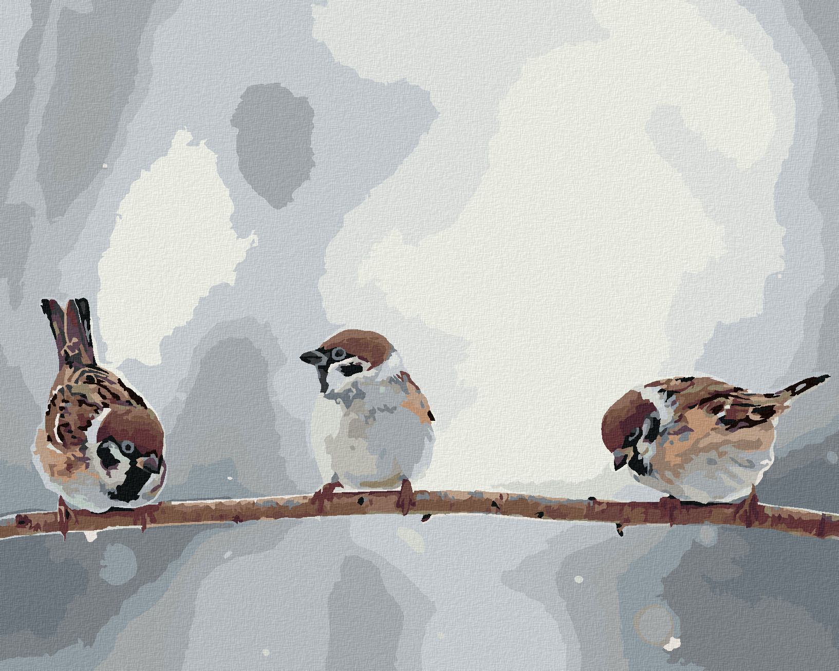 Malování podle čísel - MALÍ PTÁČCI NA VĚTVI - 40x50 cm, bez rámu a bez vypnutí plátna