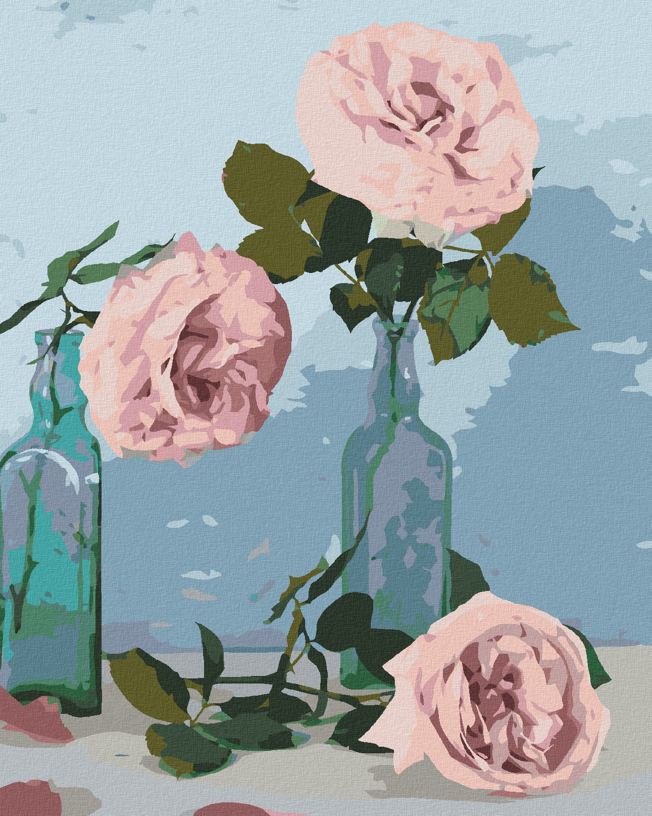 Malování podle čísel - TŘI RŮŽOVÉ RŮŽE - 40x50 cm, bez rámu a bez vypnutí plátna