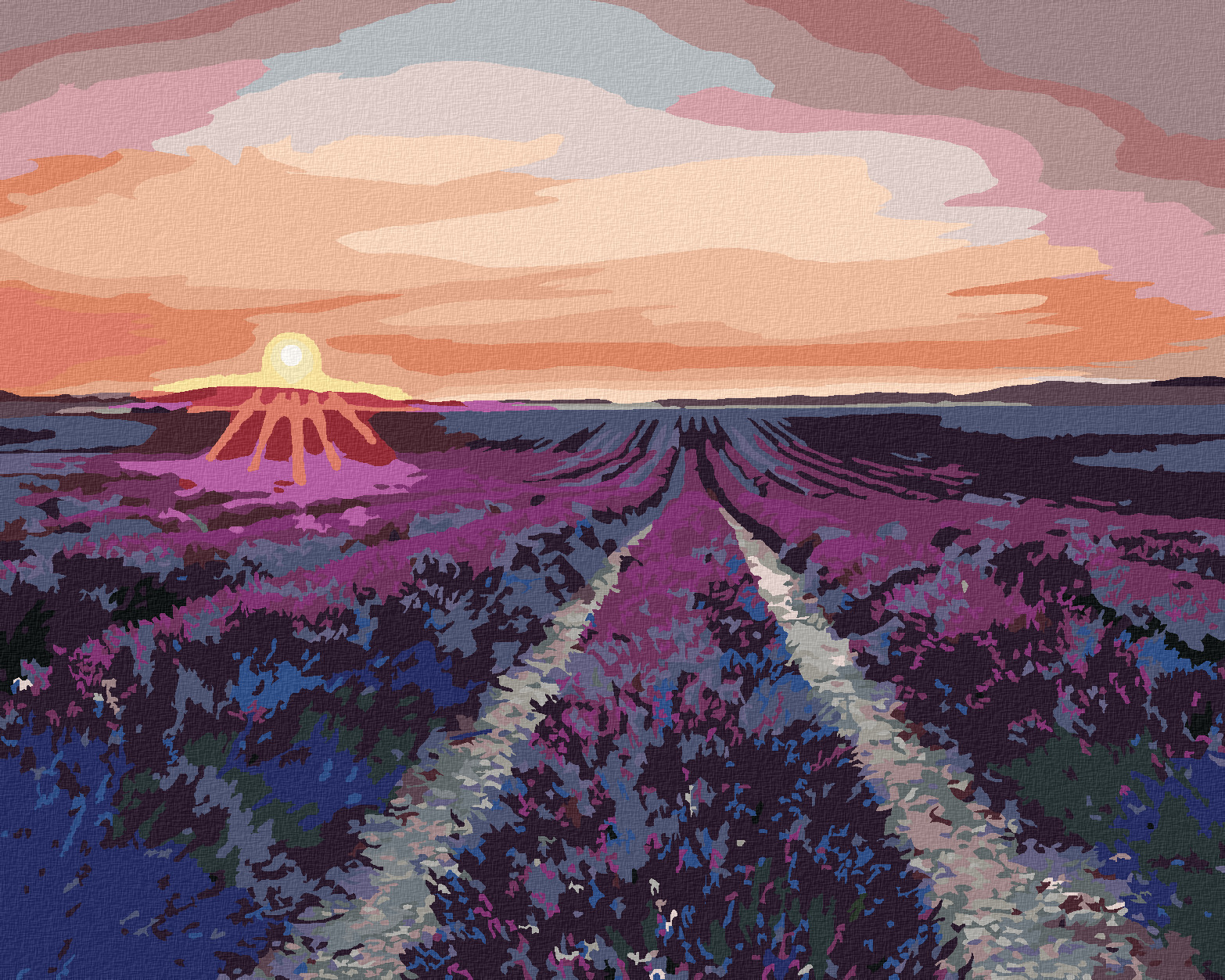 Malování podle čísel - LEVANDULOVÉ POLE A ZÁPAD SLUNCE - 40x50 cm, vypnuté plátno na rám