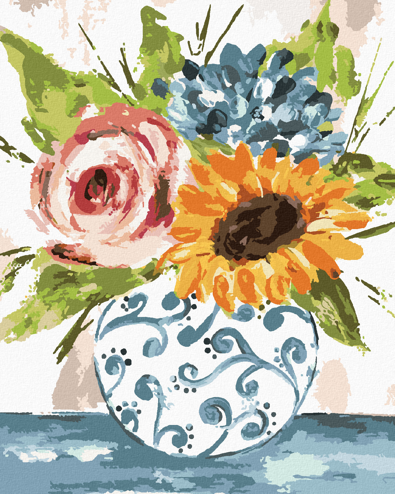 Malování podle čísel - ZÁTIŠÍ KVĚTINY VE VÁZE (HALEY BUSH) - 40x50 cm, vypnuté plátno na rám