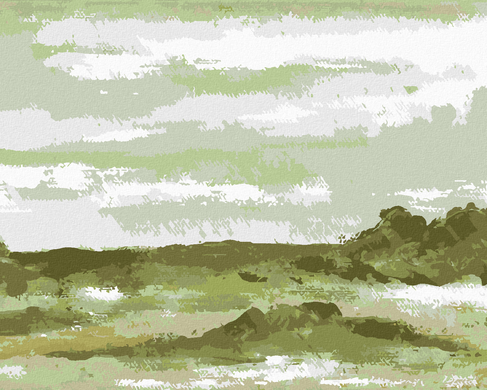 Malování podle čísel - ZELENÁ KRAJINA (HALEY BUSH) - 40x50 cm, bez rámu a bez vypnutí plátna