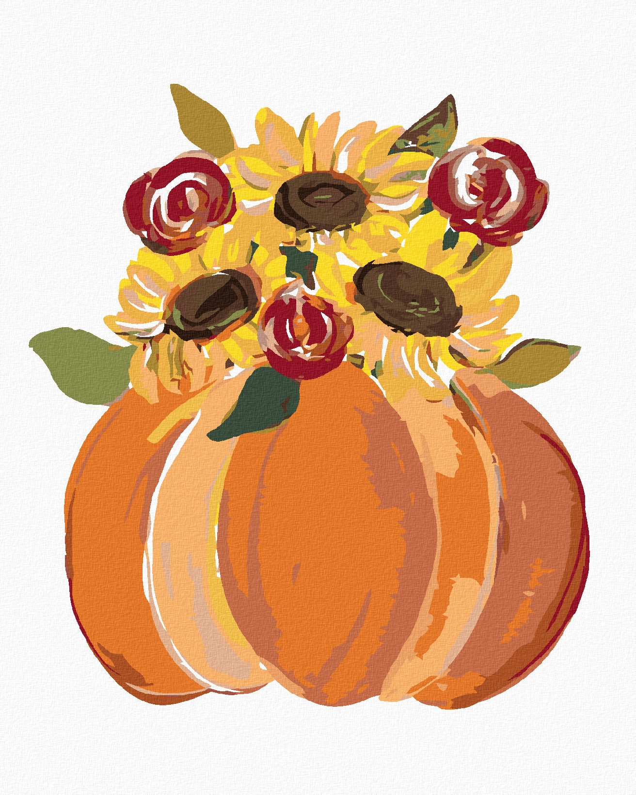 Malování podle čísel - ORANŽOVÉ DÝNĚ SE SLUNEČNICEMI (HALEY BUSH) - 40x50 cm, vypnuté plátno na rám
