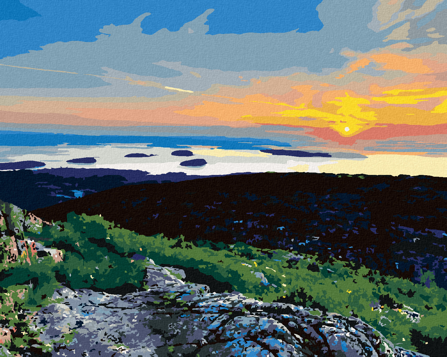 Malování podle čísel - ZÁPAD SLUNCE NAD KRAJINOU (TED DAVIS) - 40x50 cm, vypnuté plátno na rám