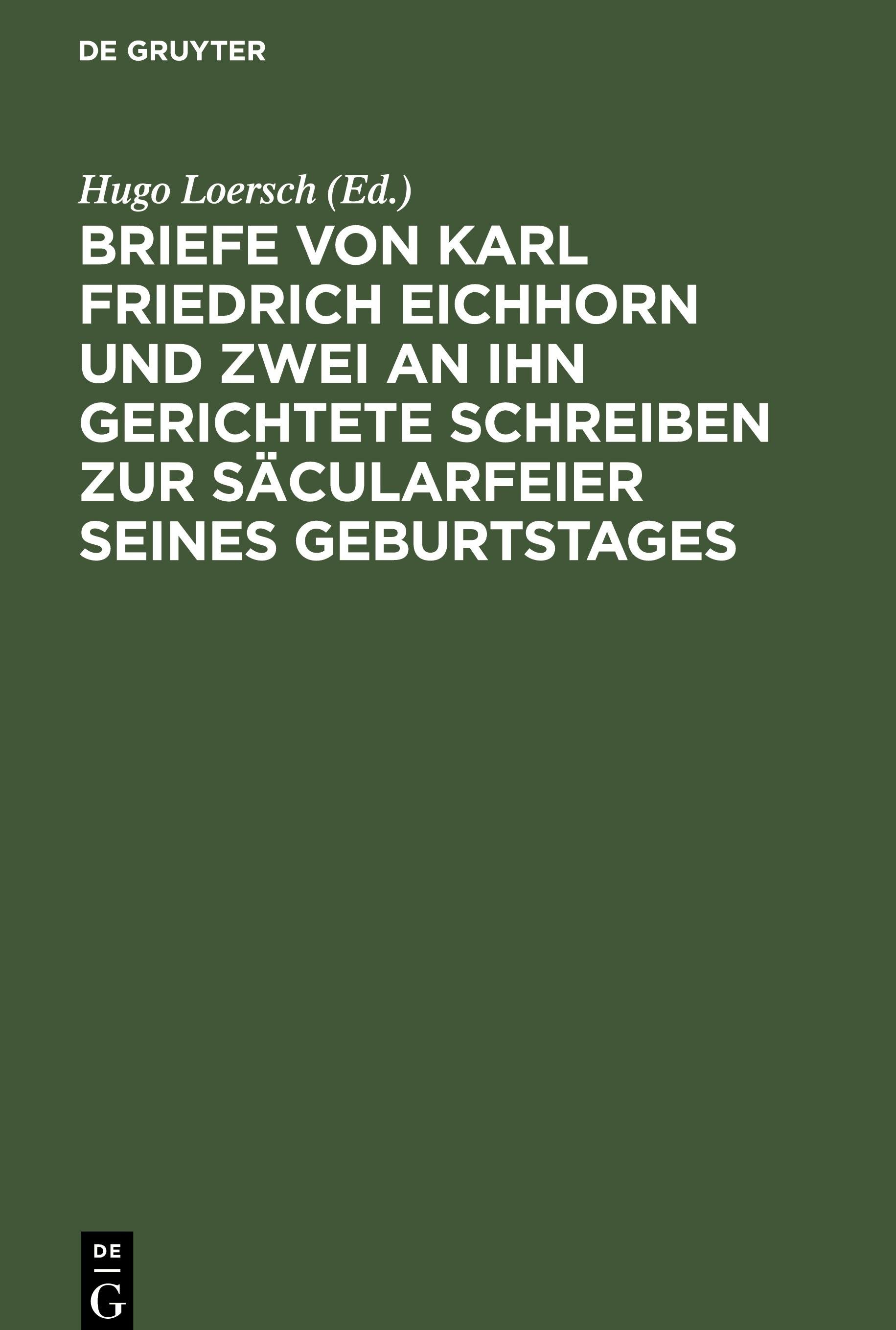 Briefe von Karl Friedrich Eichhorn und zwei an ihn gerichtete Schreiben zur Säcularfeier seines Geburtstages (německy)