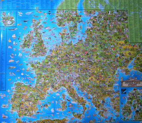Velká nástěnná mapa Evropy pro děti. V jednotlivých státech jsou pro lepší zapamatování přímo zakreslena největší města, známé památky, zvířata, květěna, sporty, které jednotlivé země proslavily a spousta dalších zajímavostí. Všechna fakta jsou ještě přehledně sepsána v názorné celkové tabulce v pravém horním rohu mapy. Mapa je názorná a krásně barevná a může se tak stát nejen pomůckou, ale také doplňkem – obrazem dětského pokoje.