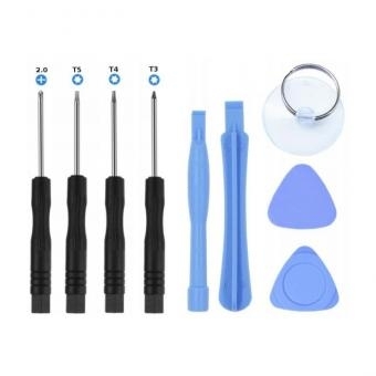 Sada obsahuje všetko potrebné: plochý a krížový (Phillips) skrutkovač, nástroj na ľahké vybratie batérie, nástroj na otváranie a zdvíhanie krytu, dve páčky na rýchlu demontáž krytu a praktickú prisávku na bezpečné vytiahnutie obrazovky.