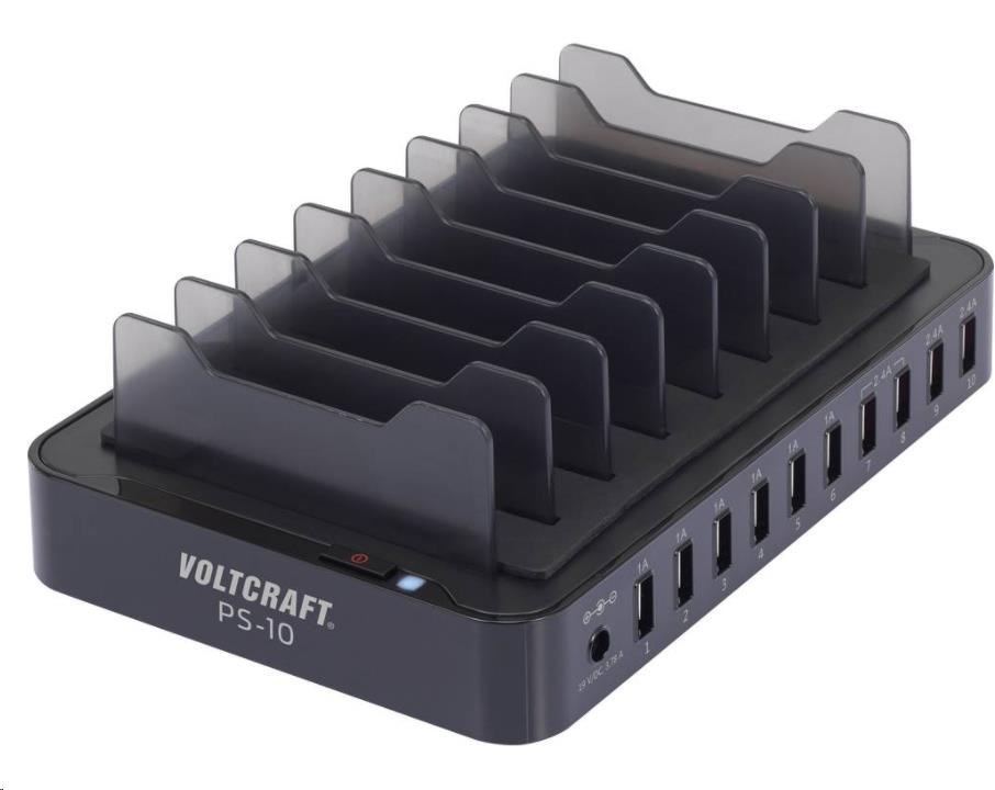 Nabíjecí stanice umožňuje současné nabíjení až 10 USB zařízení. K dispozici je 6 portů s maximálním výstupem 1 A. Další dva páry výstupů mohou kombinovat maximální výstup 2,4 A na pár. Tyto výstupy slouží pro rychlé nabíjení chytrých telefonů a tabletů. Nabíječka je vhodná v případě, že je třeba nabíjet mnoho USB zařízení najednou.