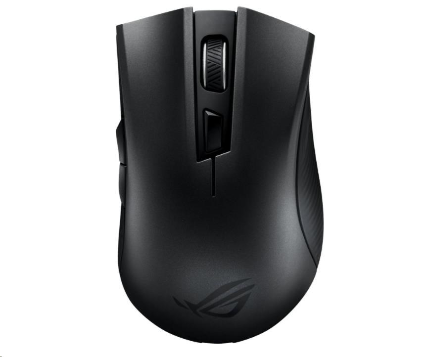 ROG Strix Carry ergonomic optical gaming mouse with dual 2.4GHz/Bluetooth wireless connectivity, 7200-dpi sensor, and ROG-exclusive switch socket design