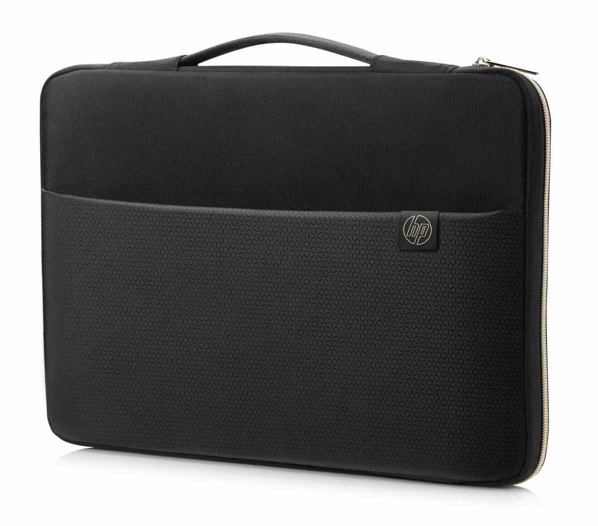 HP 35.56 cm (14") Carry Sleeve Black/GoldOchraňte svůj notebook před každodenní nárazy a škrábanci s robustním pouzdrem, které nabízí víc než ochranu. Pohodlné držadlo a rychle přístupná přední kapsa usnadňují cestování. Kapsa pojme pera, paměťové moduly a další nezbytné příslušenství.Pohodlné...