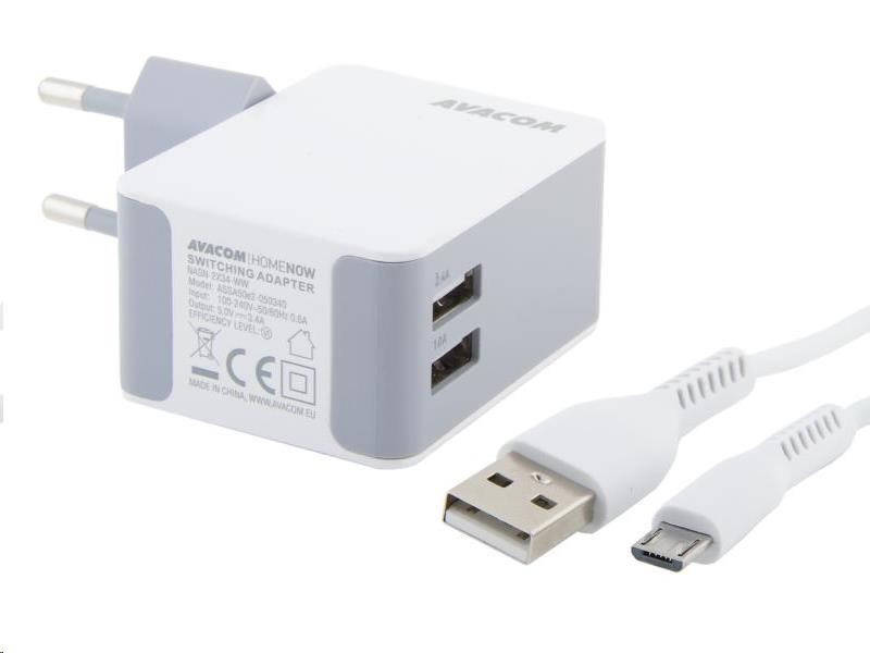 AVACOM HomeNOW síťová nabíječka 3,4A se dvěma výstupy, bílá barva (micro USB kabel)