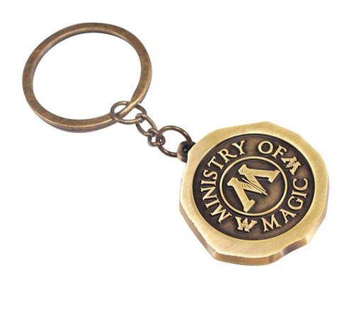 Přívěsek na klíče s logem a nápisem: Ministry of Magic (Ministerstvo kouzel), ze slavné sci-fi ságy Harry Potter.