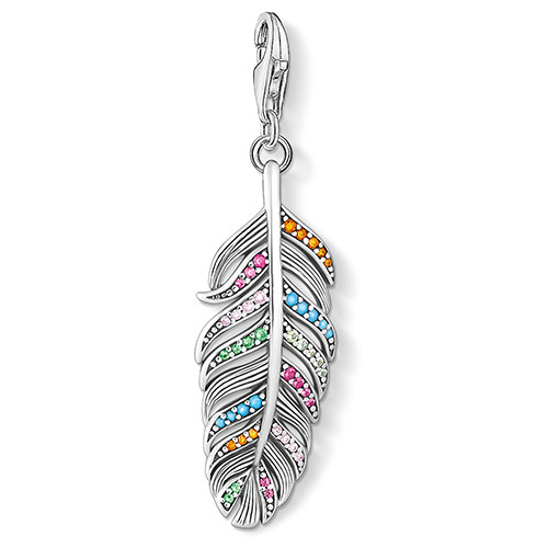 Přívěsek \"Pírko\" Thomas Sabo, 1832-342-7, Charm Club, 925 Sterling silver, blackened, glass-ceramic stone, synthetic corundum, zirconia | multicoloured
